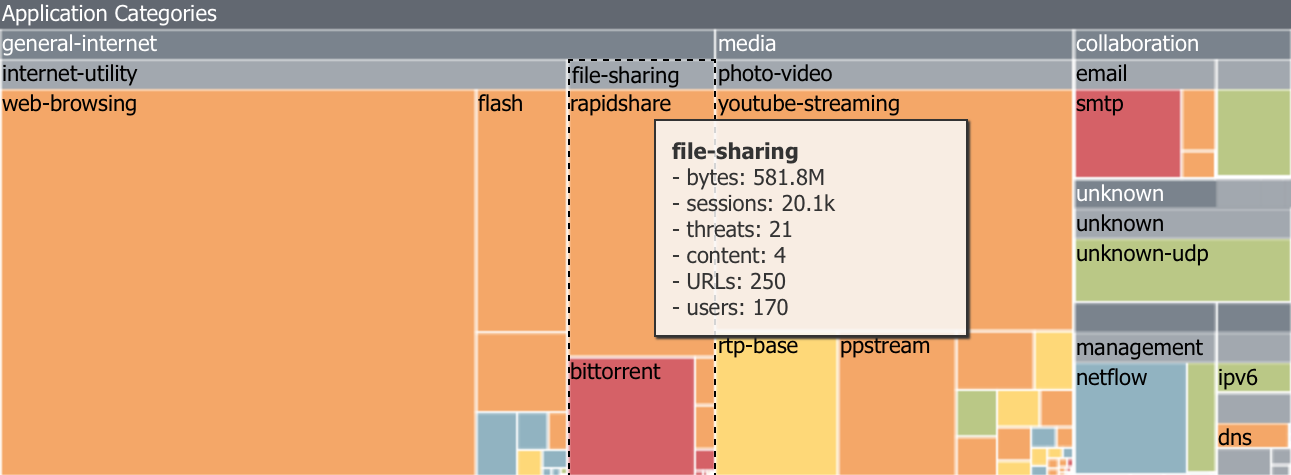 | Application | Risk | Bytes | Sessions | Threats | Content | URLs | Users |
